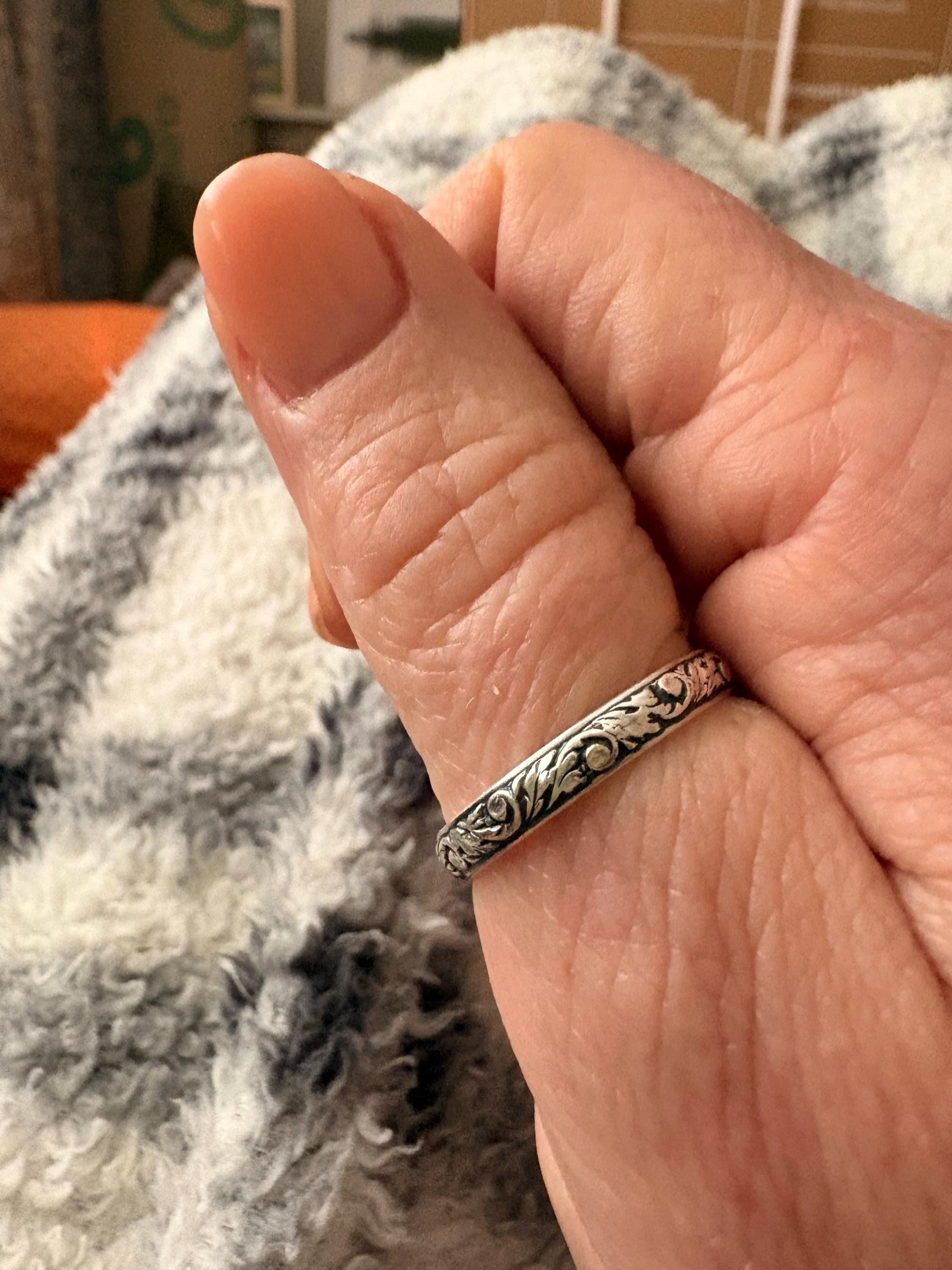 Sterling Silver Botanic Swirl Detailed Ring, 3.5mm Wide, Art Neuveau Inspired, Stackable, Thumb Ring, Gift for her